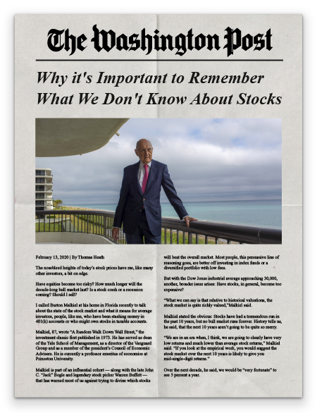 Despite his myriad accomplishments and professional experiences, there has been one unwavering constant in Professor Malkiel’s career: his passionate belief that the power and efficiency of low-cost, diversified, and well-balanced index-based investing should be available to all American families, regardless of income or economic status. It was this passion that led him to write A Random Walk Down Wall Street over 39 years ago, and it is the same passion that makes him a part of our team today.